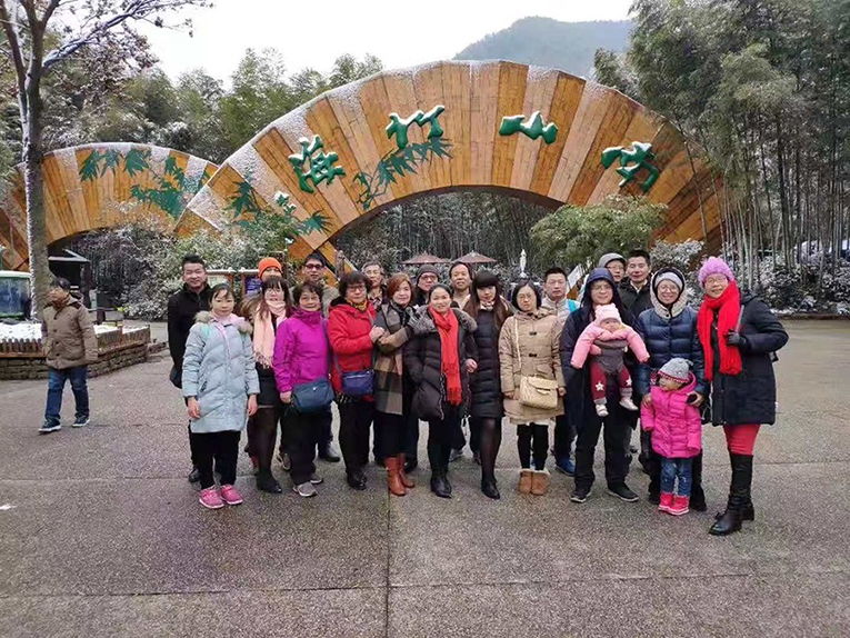 2019年1月上海虹潤公司全體員工懷著辭舊迎新的愉悅心情分乘七輛小車前往江蘇溧陽天目湖自駕游。一行人前往天目湖涵田半山溫泉。這是一處依著山坡而建的溫泉,只見層層熱氣與天空中紛紛揚揚的雪花相互交織著,形成一道獨特的風景。這熱氣騰騰的溫泉洗去了一行人上午的舟車勞頓。晚上我們住宿天目湖萬豪大酒店。次日上午我們前往地處蘇浙皖三省交界以竹文化和壽文化為主題素有‘天堂南山、夢幻竹海’美譽的南山竹海景區(qū)。一行人披著鵝毛細雪,坐在纜車上靜閉雙眸聆聽竹海的呼吸與輕語,時而欣賞竹海的波瀾壯闊。下午返回上海。