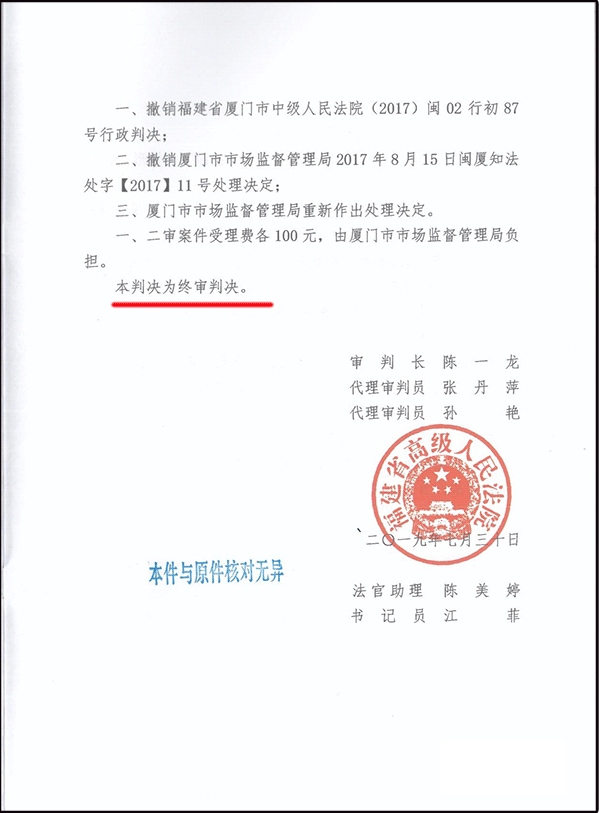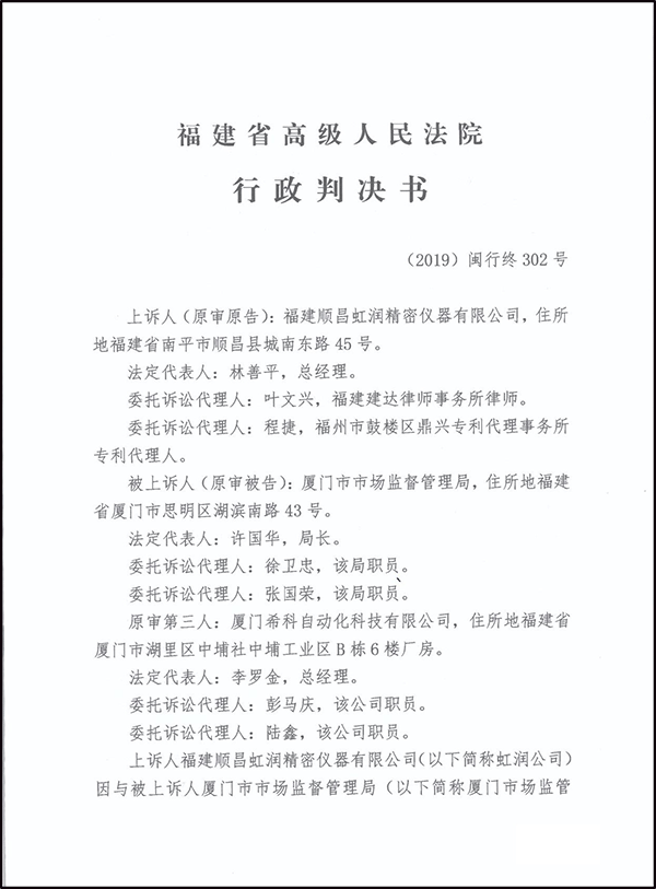 附件:福建省高級(jí)人民法院【2019】閩行終302號(hào)行政判決書
