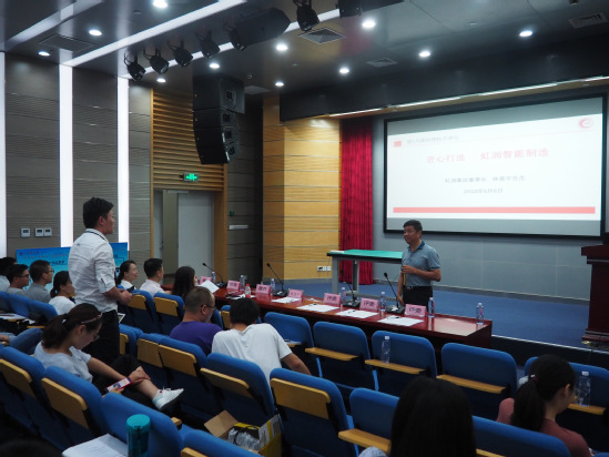 決賽之前,林善平先生給學(xué)生們作了題為“匠心打造,虹潤智能制造”的講座,林先生圍繞虹潤集團傳承的“工匠精神”和“傳統(tǒng)文化”,向?qū)W生們講述了虹潤如何通過不斷尋求發(fā)展道路、不斷發(fā)現(xiàn)問題解決問題,從“中國最好”走向“世界最好”的過程。講座后同學(xué)們就科技創(chuàng)新、大學(xué)生創(chuàng)業(yè)等感興趣的方面向林先生提問,林先生一一做了耐心解答,現(xiàn)場氣氛活躍。