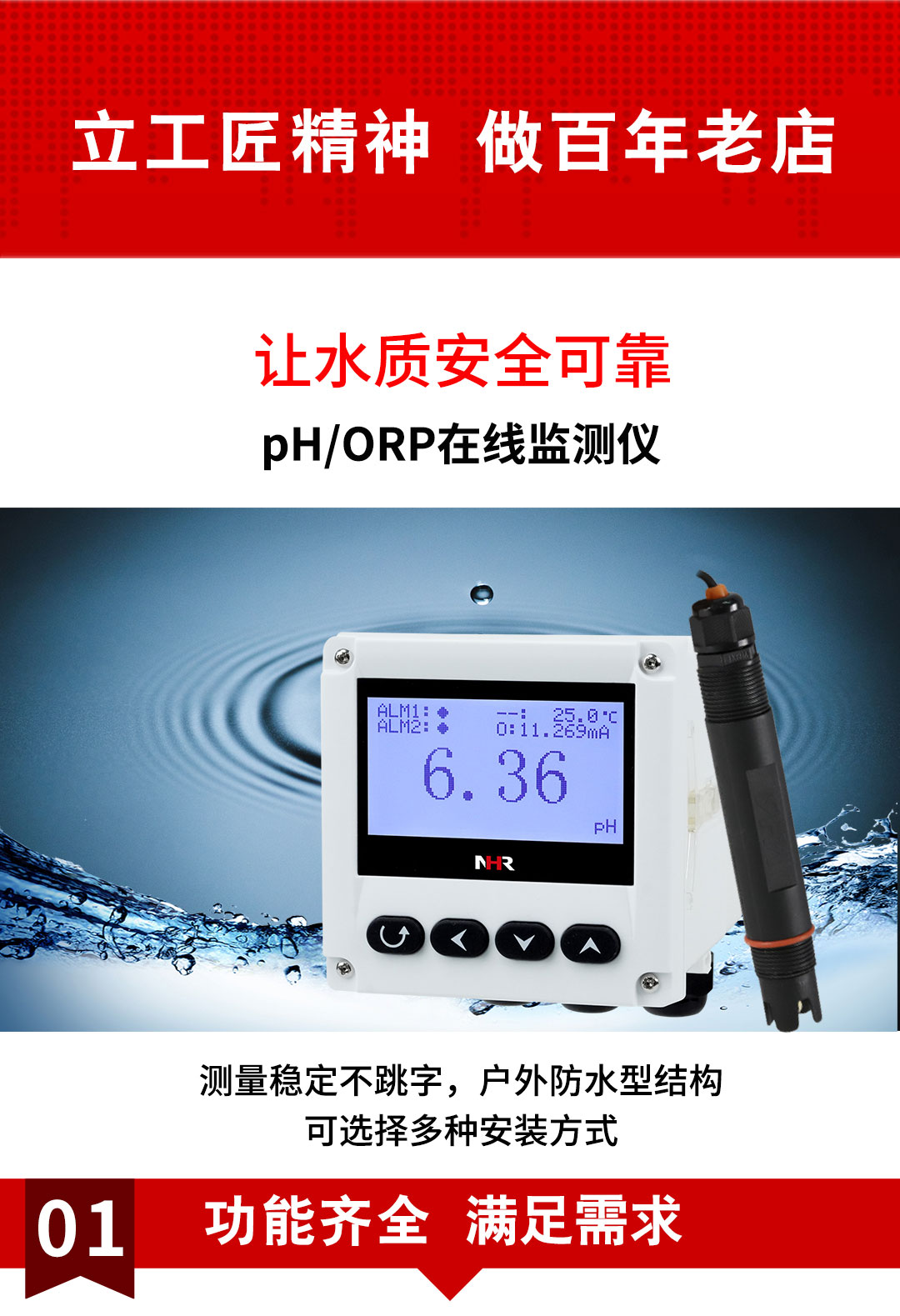 虹潤(rùn)公司是專(zhuān)業(yè)生產(chǎn)水質(zhì)分析儀的國(guó)家專(zhuān)精特新“小巨人”企業(yè)。生產(chǎn)的PH/ORP在線監(jiān)測(cè)儀,具有多元化安裝方式,IP65防護(hù)等級(jí),多種類(lèi)型輸出,測(cè)量精準(zhǔn)穩(wěn)定不跳字,變送輸出精準(zhǔn)等特點(diǎn)。產(chǎn)品獲得一種適應(yīng)性強(qiáng)PH控制儀、智能化控制器等2項(xiàng)國(guó)家發(fā)明專(zhuān)利;主持起草現(xiàn)場(chǎng)設(shè)備集成等5項(xiàng)智能制造國(guó)家標(biāo)準(zhǔn),以及現(xiàn)場(chǎng)設(shè)備工具(FDT)接口規(guī)范、工業(yè)過(guò)程控制系統(tǒng)用模擬輸入兩位或多位輸出儀表、過(guò)程分析技術(shù)系統(tǒng)等3項(xiàng)國(guó)家標(biāo)準(zhǔn);參與國(guó)際5G標(biāo)準(zhǔn)制定,取得PH值測(cè)量?jī)x表等2項(xiàng)相關(guān)軟件著作權(quán)。產(chǎn)品廣泛應(yīng)用于實(shí)驗(yàn)室、水處理、環(huán)境監(jiān)測(cè)、食品、制藥、農(nóng)業(yè)等諸多領(lǐng)域。