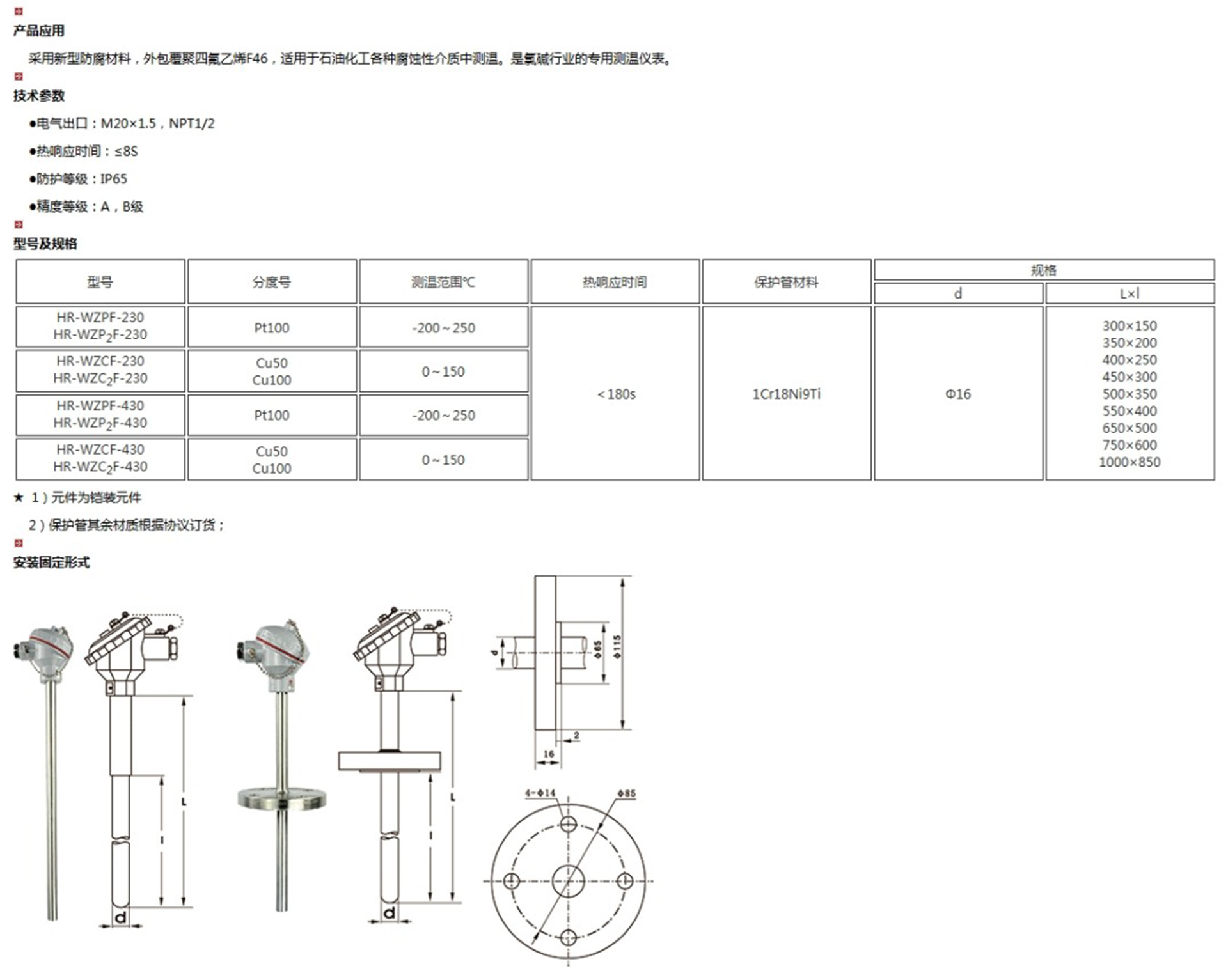 防腐熱電阻采用新型防腐材料,外包覆聚四氟乙烯F46,適用于石油化工各種腐蝕性介質(zhì)中測(cè)溫。是氯堿行業(yè)的專(zhuān)用測(cè)溫儀表。
